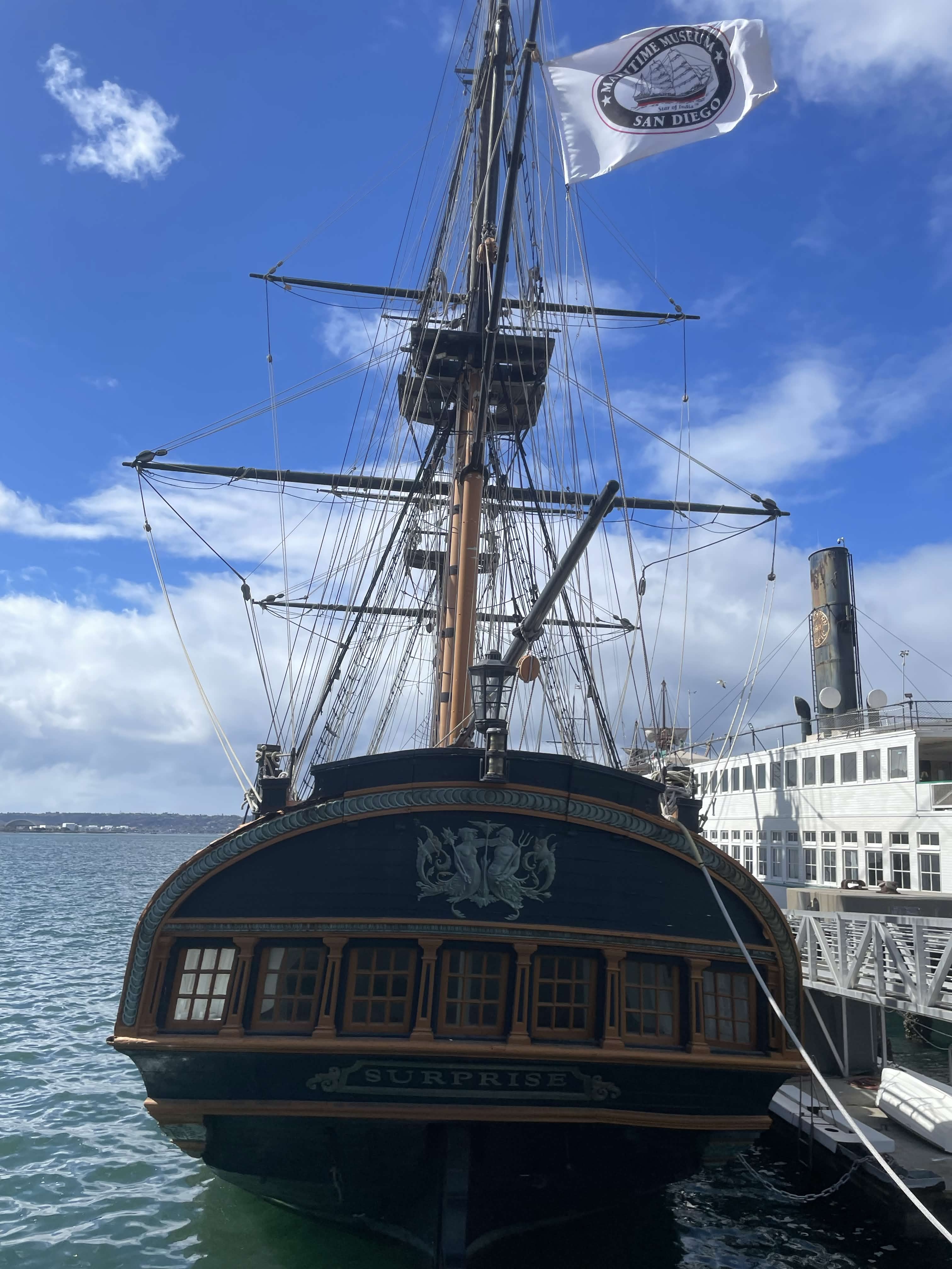 It was too cramped to take many photos inside of the Surprise, but I did get some good ones of me inside the adjacent Star of India gazing upon her and quite a few shots of her exterior and deck. I'd share all the photos here but there's literally hundreds of them.