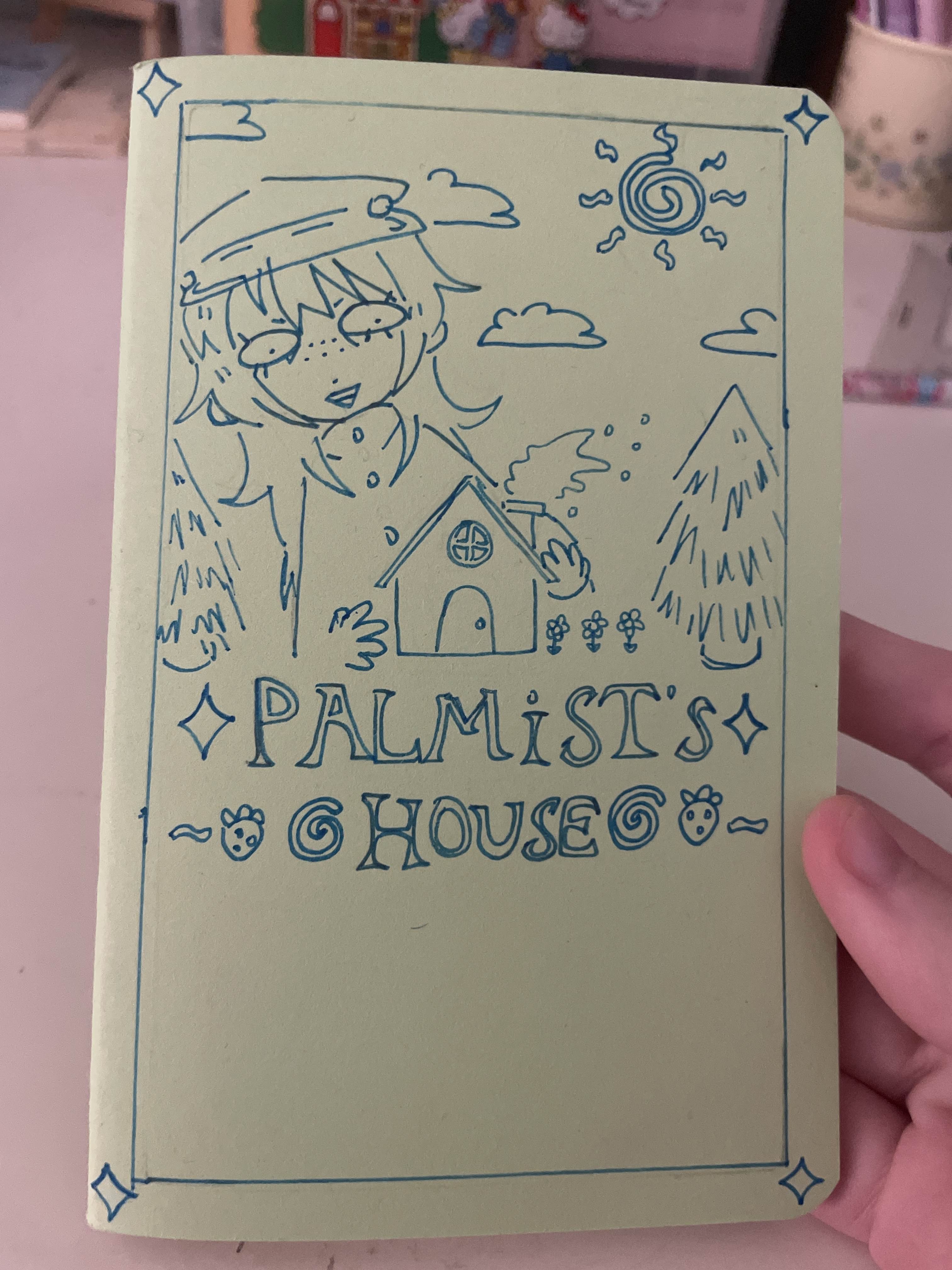 I drew up the cover all nice to look like an actual book, I might go back and bedazzle it a bit more since I have these tiny gem-like stickers that could look cool in each corner. IDK. I think it looks cute enough already, maybe I won't add anything else.
